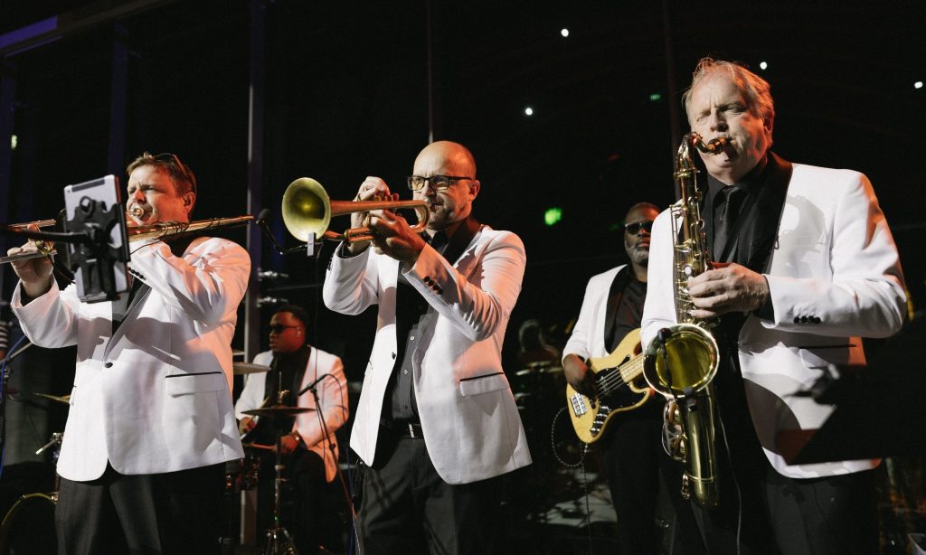 Funk Factory’s high-energy lead vocalists have huge vocal ranges and even bigger personalities. They will have everybody, from the youngest to the oldest, on the dance floor all night long! Funk Factory rocks wedding receptions, festivals, galas, and corporate events – and they can bring the party to your event too!